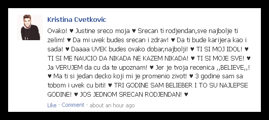 Svi koji žele čestitati Justinu rođendan i biti dodani u ovu divnu kolekciju fotografija, to imate priliku uraditi na wall-u ili u inbox naše facebook stranice: BRAVO